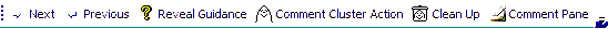 Along with Word's Track Revision toolbar buttons, Ghost Reviewer adds six more to make your job easier. With these buttons, you can quickly update each individual comment or wait until you're finished and clean up the comments all at once: